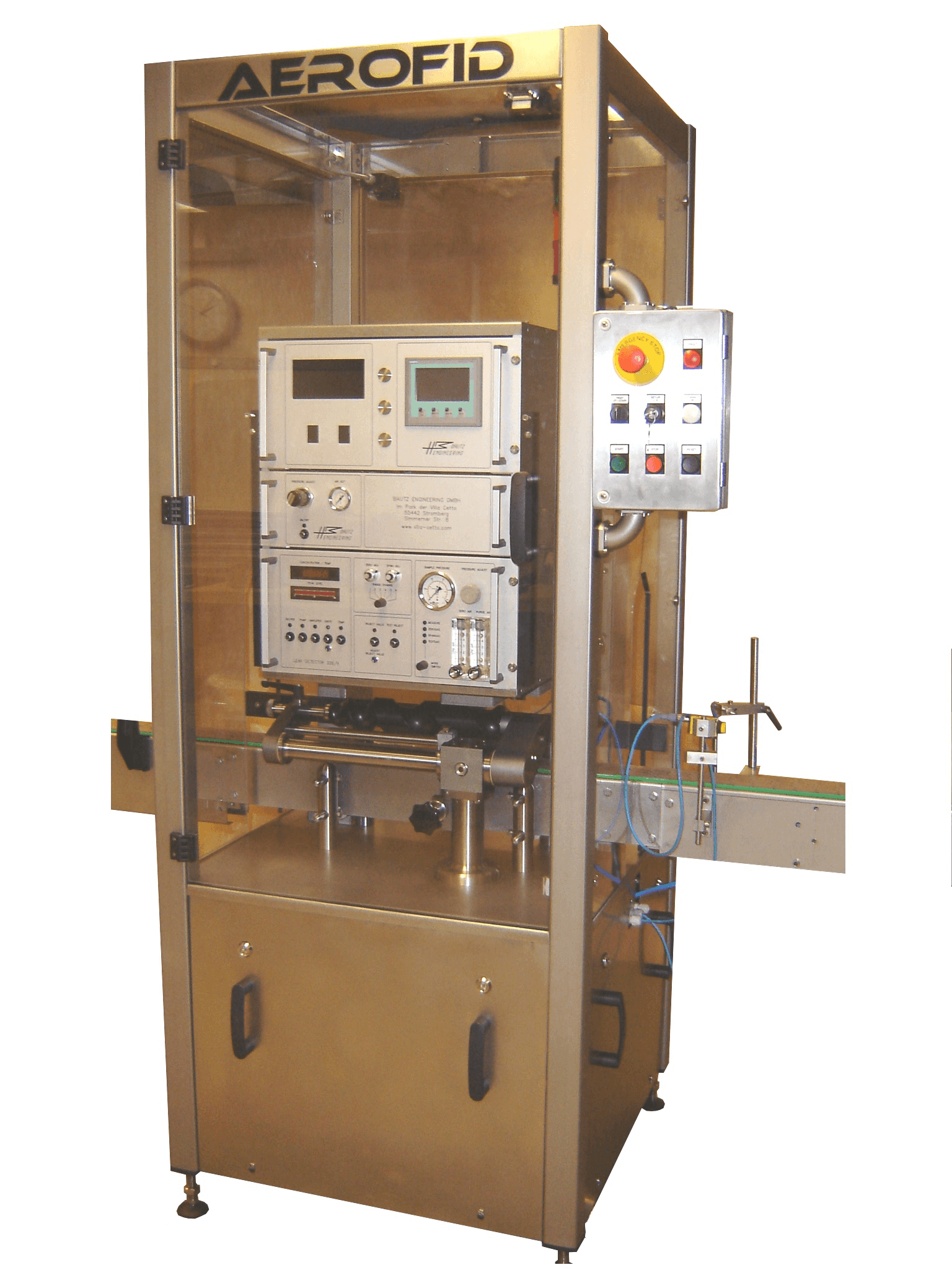 Unsere Lecktester AEROFID sind schnell ansprechende Leck Detektoren. Das Herz der Anlage ist ein hoch sensitives, schnell ansprechendes Gasanalysesystem. Das System entnimmt eine Gasprobe aus dem Ventil-, und Crimpbereich der Dose. Diese wird gefiltert und der Analyseeinheit zugeführt. Wird ein Leck erkannt, speichert die Steuerung die Position der Dose und wirft diese an der Auswurfstation in einen dafür vorgesehenen Behälter.